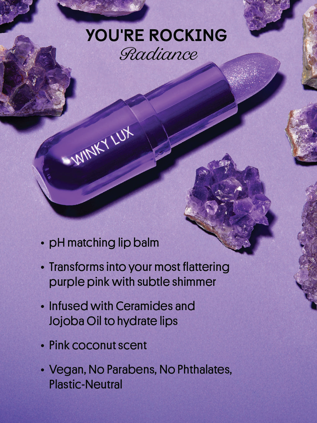 • Amethyst-inspired pH balm transforms to your skin's most flattering pink